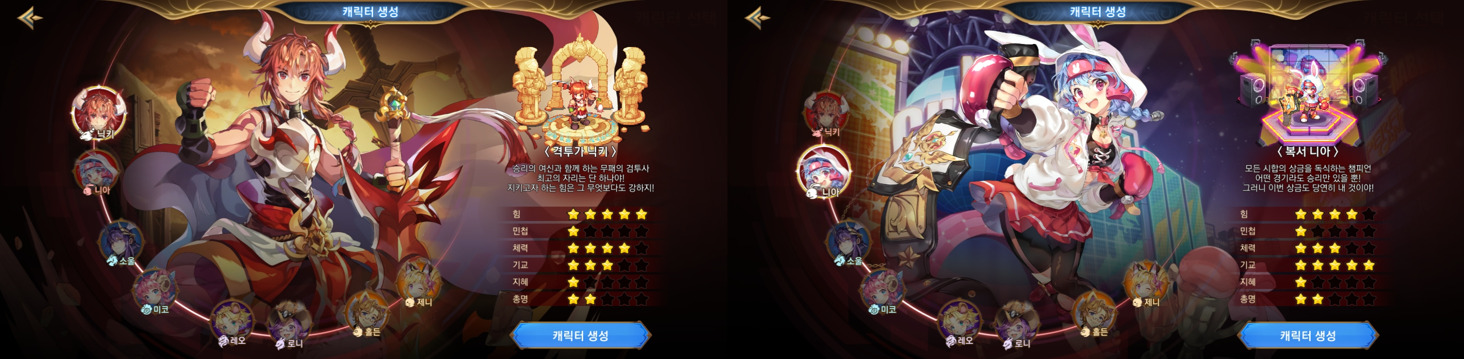 격투가 니키와 복서 니아는 근거리 전투형 캐릭터입니다.