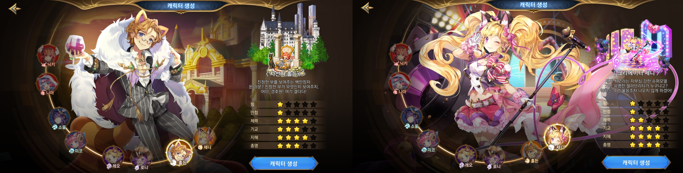 자산가 홀드와 크리에이터 제니는 소환형 캐릭터입니다.