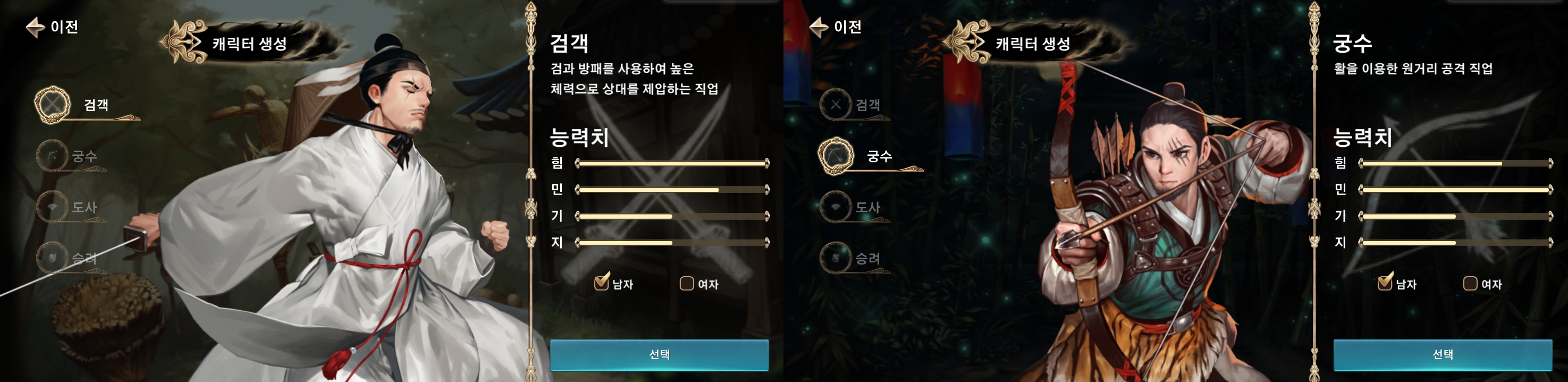 #검객 - 검과 방패를 사용하여 높은 체력으로 상대를 제압하는 직업.