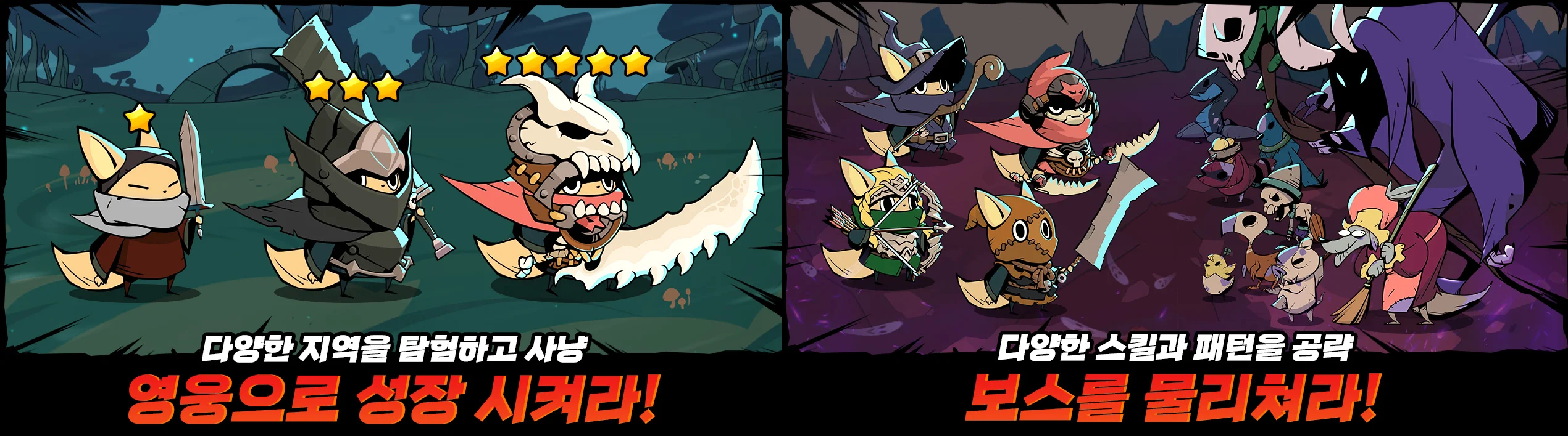 자동 플레이, 전투, 던전, 영웅 퀘스트, 수집, 육성!