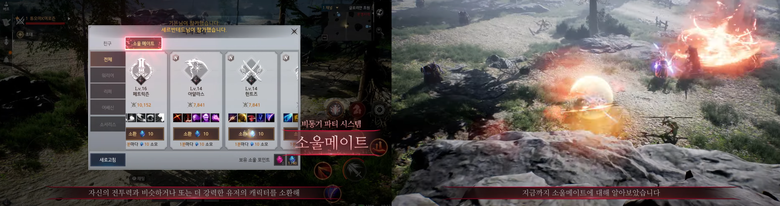 비동기 파티 시스템으로 파티 모집에 대한 스트레스 없이 전투하라.