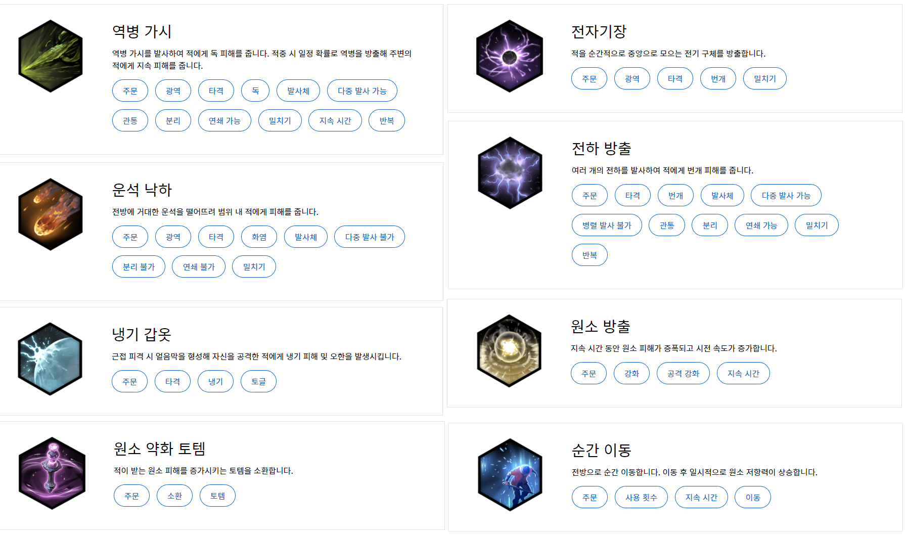 # 마법 빌드는 취향에 맞게 세팅이 가장 좋습니다. 아래는 랭커 기준 예시입니다.