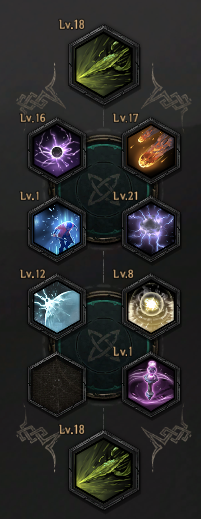 특성 V '이슬' : 강화 스킬 룬- 공격 강화 - 공격 강화 - 공격 강화 - 강화 스킬 룬 - 효과 중 피해30% + a