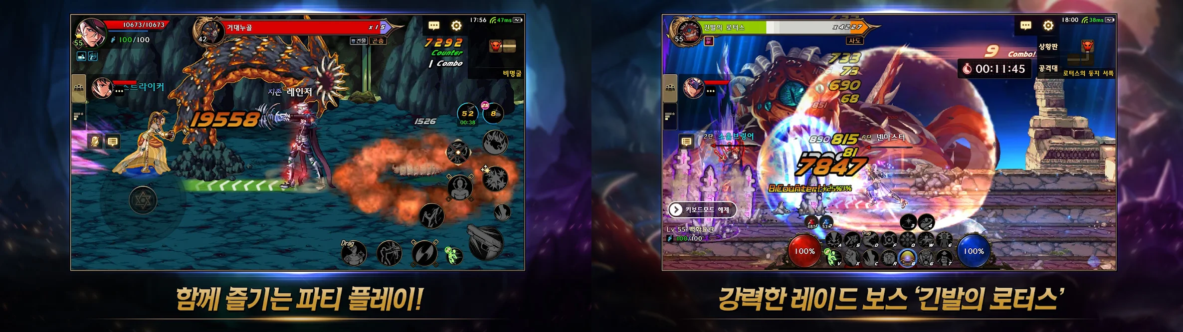 연쇄 콤보, 슬라이드, 확장 슬롯 등 모바일을 위한 특화된 조작 시스템을 통해