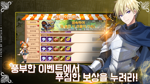 페이트 오브 세인트리아 사전예약 쿠폰 보상 : 귀속 다이아 100, 만능진화룬 10, 2급보석선물 2, 장비강화수정 20.