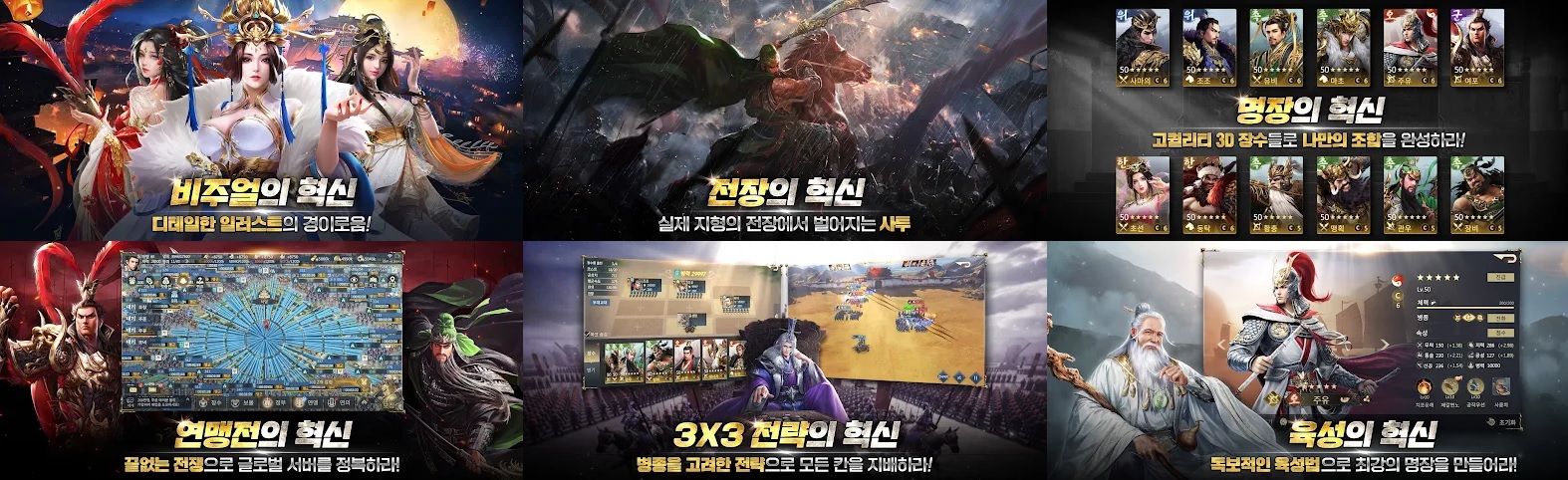 전략의 트리플 혁신, 신삼국:명장 은 삼국지의 세계관을 바탕으로 명예와 세력 확장을 위해 끊임없이 공방전을 치루는 치열한 글로벌 전략 시뮬레이션 게임입니다.