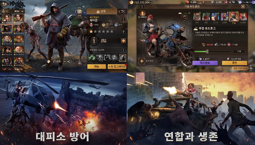 대피소 안의 병사들과 시민들을 이끄세요! 좀비를 처치하여 아포칼립스 세상에서 정의를 구현할 것인가, 다른 대피소를 약탈하여 자신을 지킬 것인가는 사령관님께 달려 있습니다. 연맹을 만들어 연맹원들과 함께 적과 싸울 수도 있습니다!