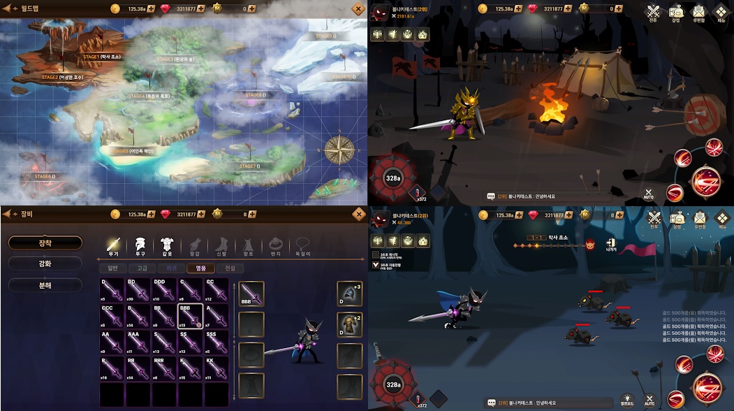#골드 및 다양한 재화로 강화/특수강화/성장 등 다양한 성장 요소가 있습니다.