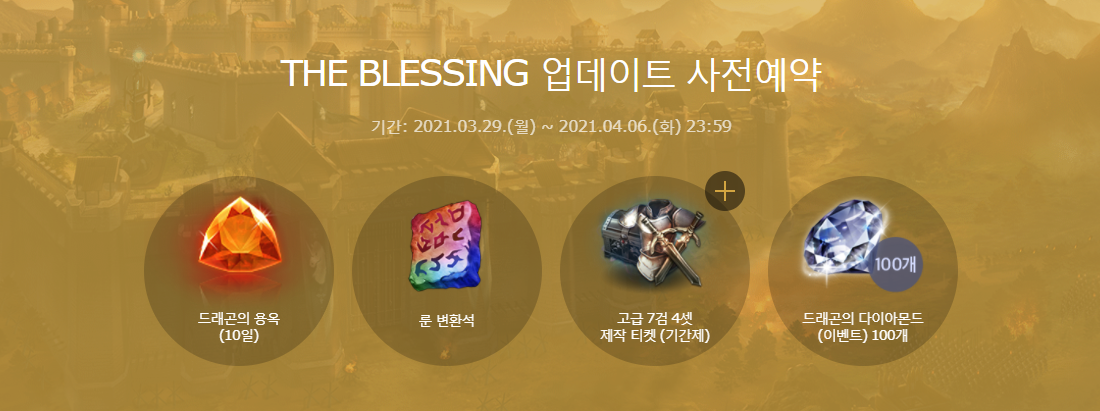 보상 : 룬 변환석 X 1개, 고급 7검 4셋 (기간제) X 1개, 드래곤의 용옥 (10일) X 1개, 드래곤의 다이아몬드 (이벤트) X 100개