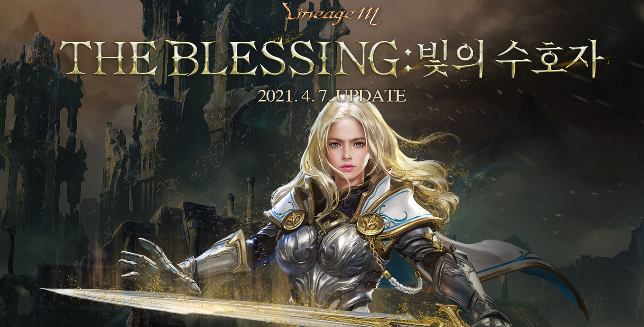 - 리니지m이 4월7일 대규모 업데이트를 준비중입니다. 'THE BLESSING:빛의 수호자'라는 이름으로 대규모 업데이트를 진행하려하고있습니다.