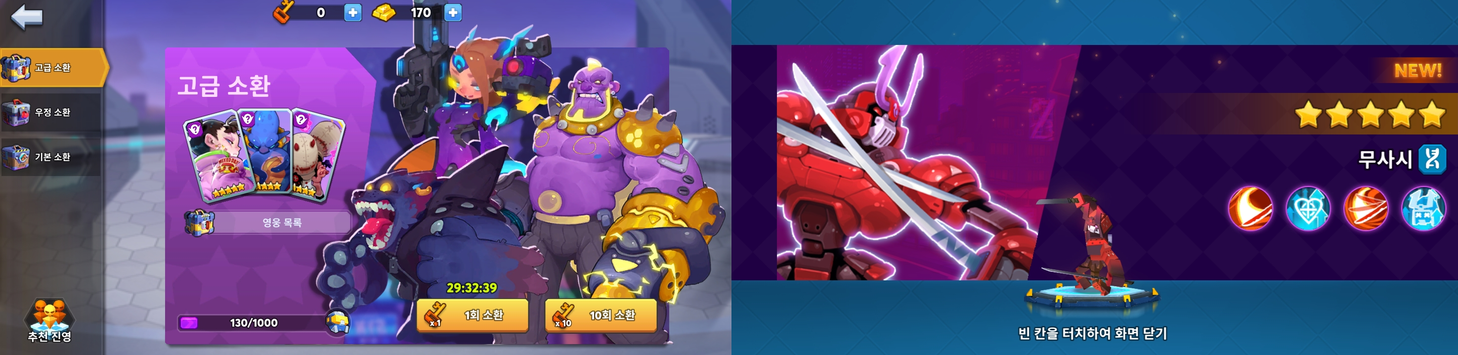 - 5성 영웅을 최소 2~3개 이상 뽑고 시작하는것이 좋은데요.